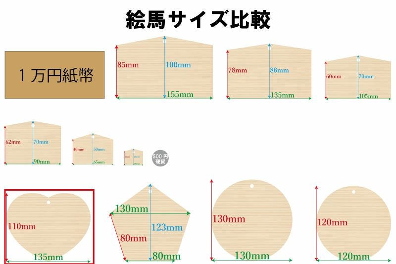 ハート型絵馬白木135mm×110mm×6.5mm(10体入)
