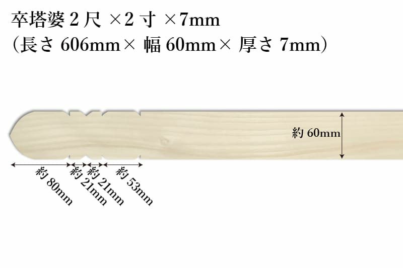特徴:色味が白く、白松に比べ若干重いです。加工性や強度、色味において卒塔婆に最適です。昔は国産のモミを使っていましたが、現在は杉の植林が進み、コスト面で輸入材となりました。