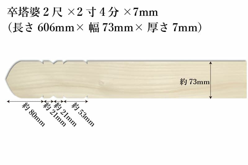 卒塔婆2尺(606mm)×2寸4分(73mm)×7mm