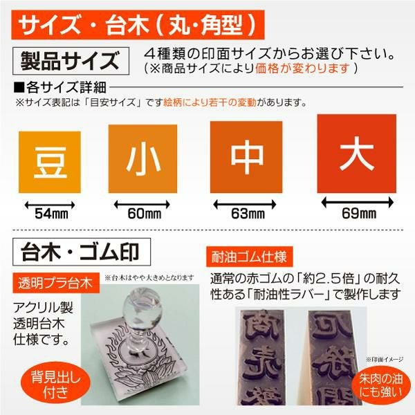 耐油ラバー仕様で沢山の捺印にも耐える高耐久スタンプです。 「絵柄」と「梵字」をお選び頂きご注文下さい。