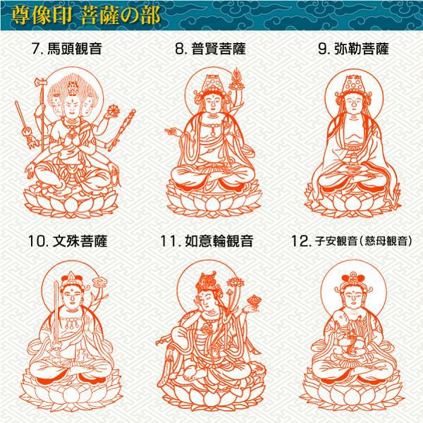 他の画像を見る 尊像印 菩薩の部 ¥ 5,060 税込 送料¥550 決済手数料無料 御朱印・護摩札・絵馬などにご利用いただけるゴム印です。 観世音菩薩/虚空蔵菩薩/勢至菩薩/地藏菩薩/十一面観音/千手観音/馬頭観音/普賢菩薩/弥勒菩薩/文殊菩薩/如意輪観音/子安観音(慈母観音)【吉報堂謹製】御朱印・護摩札・絵馬などにご利用いただけるゴム印です。 詳細を見る お気に入りに登録する