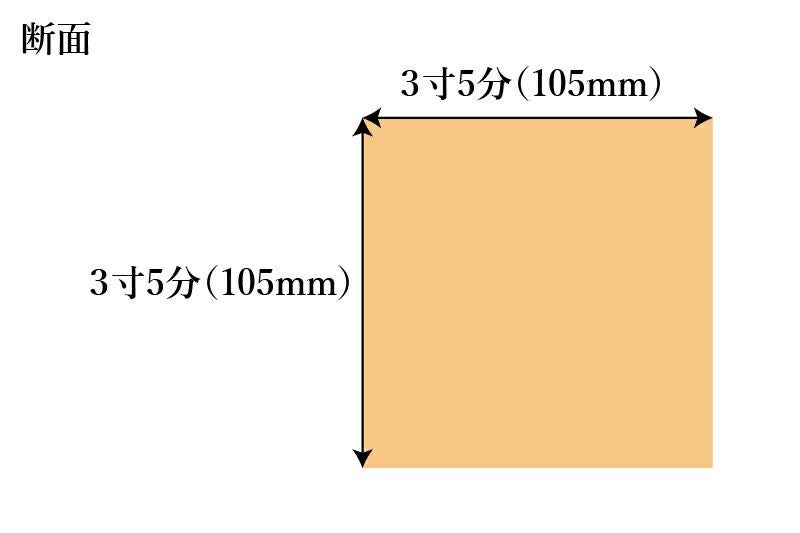 長さ8尺(2424mm)×幅3寸5分(105mm)×厚さ3寸5分(105mm)