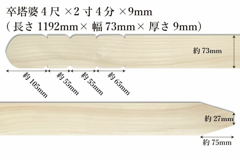 卒塔婆4尺(1192mm)×2寸4分(73mm)×9mm
