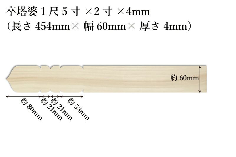卒塔婆1尺5寸(454mm)×2寸(60mm)×4mm