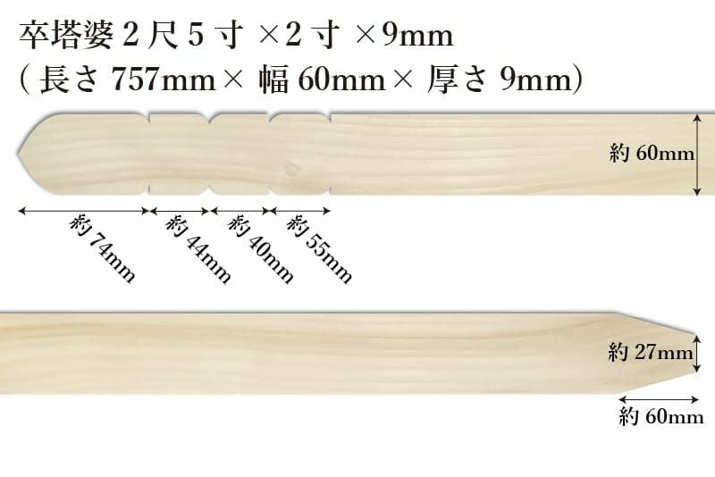 卒塔婆2尺5寸(757mm)×2寸(60mm)×9mm