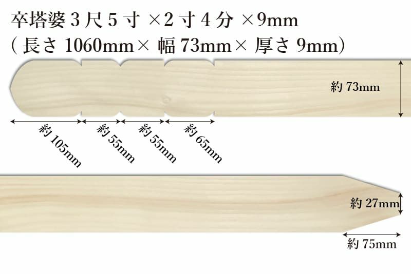 卒塔婆3尺5寸(1060mm)×2寸4分(73mm)×9mm