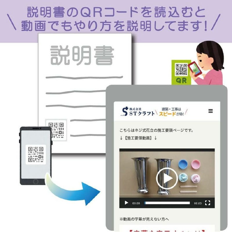 【お墓用】ステンレス製花立一体式(中) 左右1対セット 中サイズ 石材専用ボンド・動画QRコード付き説明書入り【STクラフト謹製】