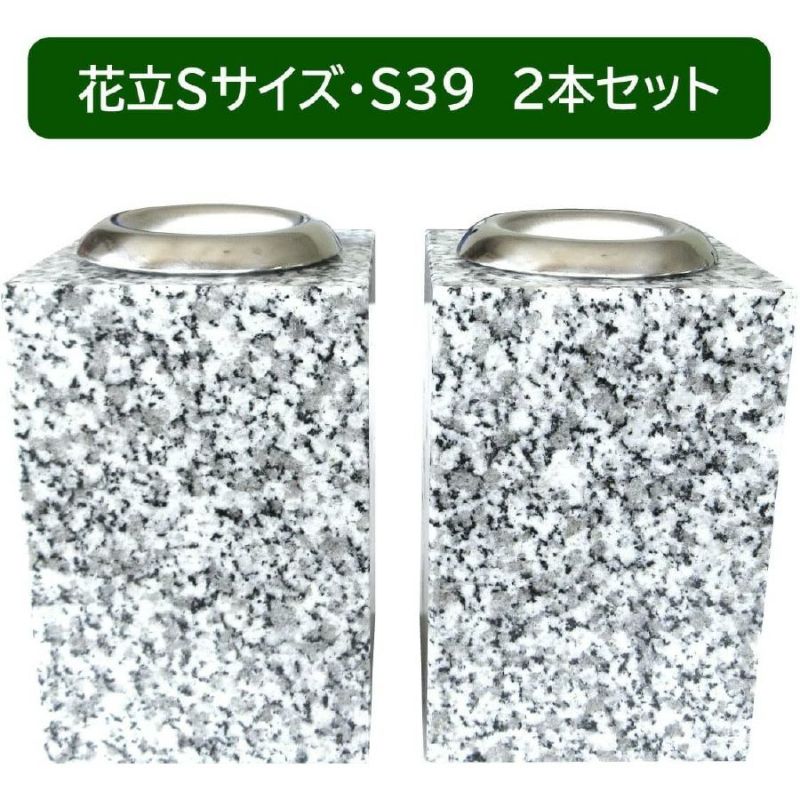 【お墓用】花立左右1対セット高級白みかげ石製 ステンレス花筒付W39x02【STクラフト謹製】