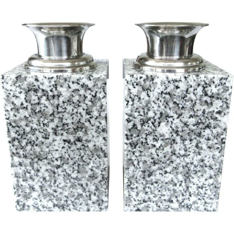 【お墓用】花立単品高級白みかげ石製 ステンレス花筒付S-W39【STクラフト謹製】