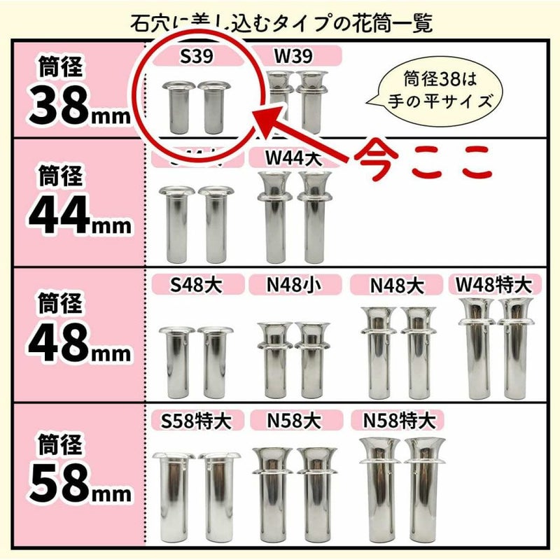 【お墓用】花立高級ステンレス製 1対2本セットS-39【STクラフト謹製】 ¥2,848(税込)