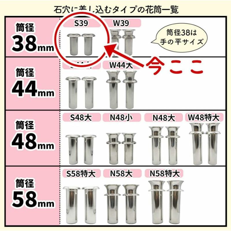 【お墓用】花立左右1対セット高級白みかげ石製 ステンレス花筒付W39x02【STクラフト謹製】