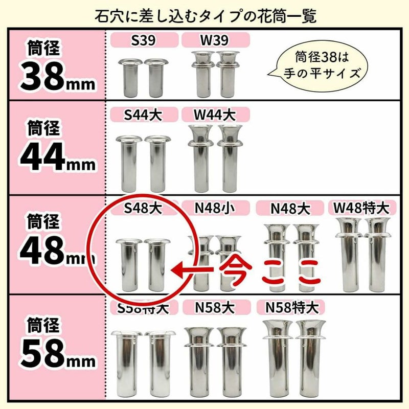 【お墓用】花立高級ステンレス製 1対2本セットS-48大【STクラフト謹製】 ¥3,170(税込)