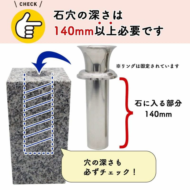【お墓用】線香立て ステンレス製 ネジ式 みかげ石の台座付き(固定済み)S01【STクラフト謹製】