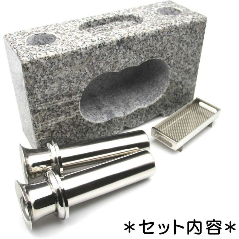・花立・線香皿・水鉢が全てセットになった大人気セット これひとつですべて揃ってます。 ・御影石サイズ:(約)幅36.5cm×高さ21cm×奥行12cm  ・重さ:約 18 kg ・花立の筒径は4.8cm 取り外し可能でメンテナンスが簡単 ・上部には水受けのくぼみもあります。