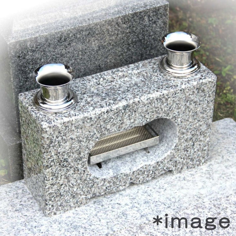【お墓用】花立・香炉一体型 高級白御影石製 ステンレスの花筒 線香皿付き全てセット 【工事不要】【STクラフト謹製】 ¥16,663(税込)