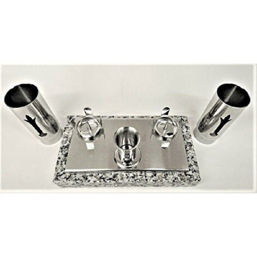 【お墓用】お線香立てローソク立てセット高級みかげ石の台座付き【STクラフト謹製】