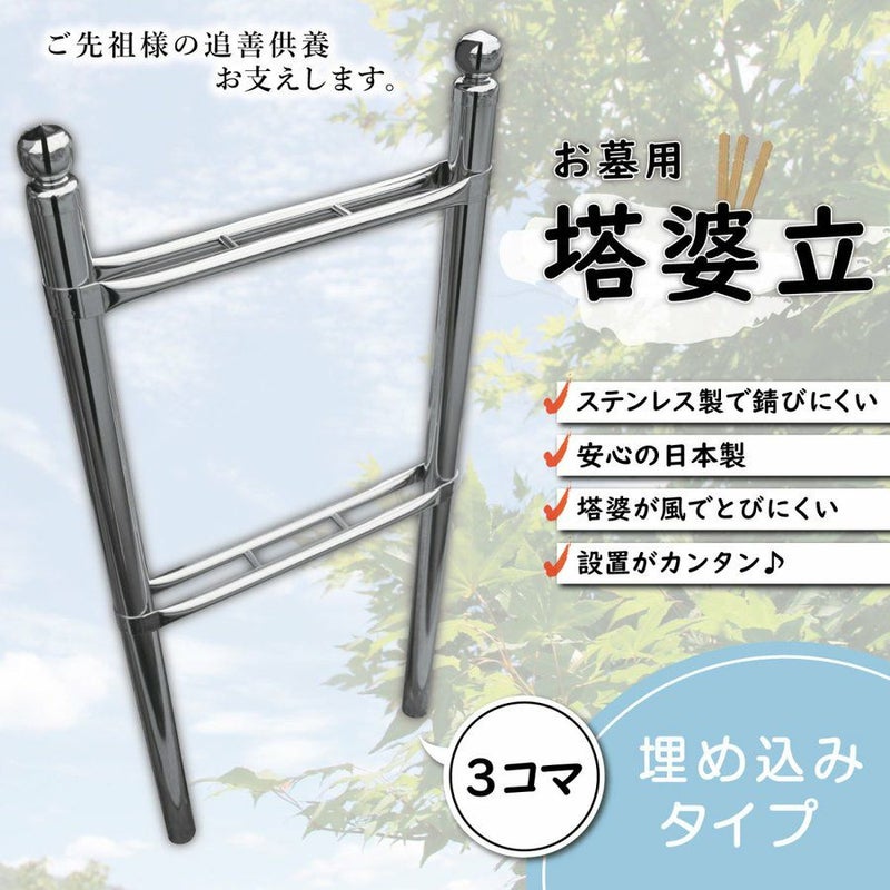国産ステンレス製卒塔婆立て3コマ埋め込みタイプ(1台)【STクラフト謹製】