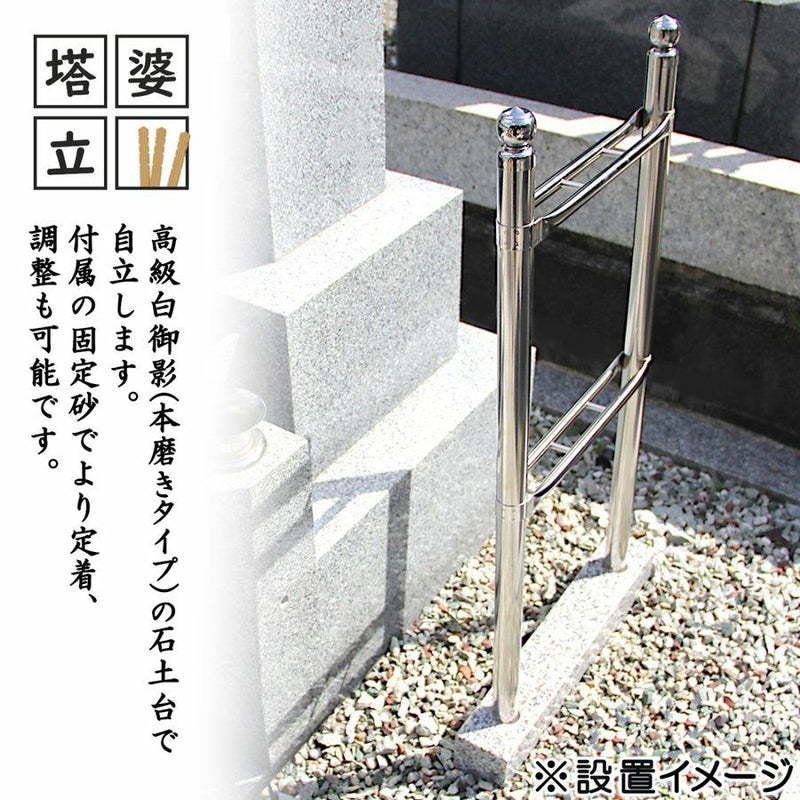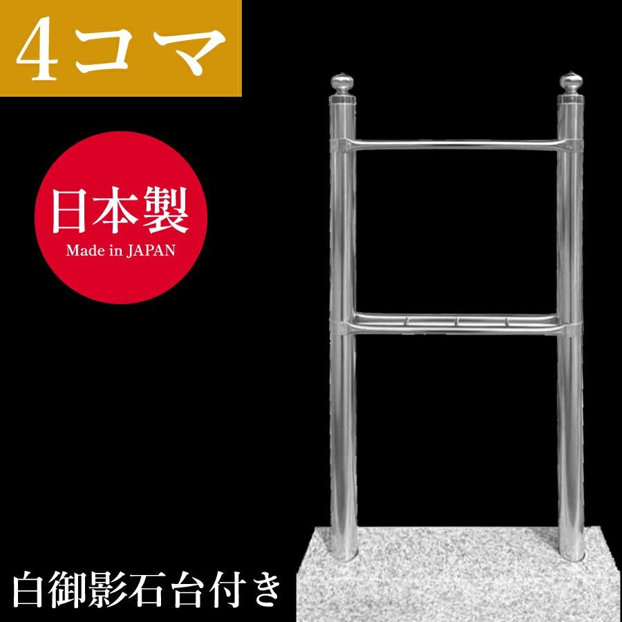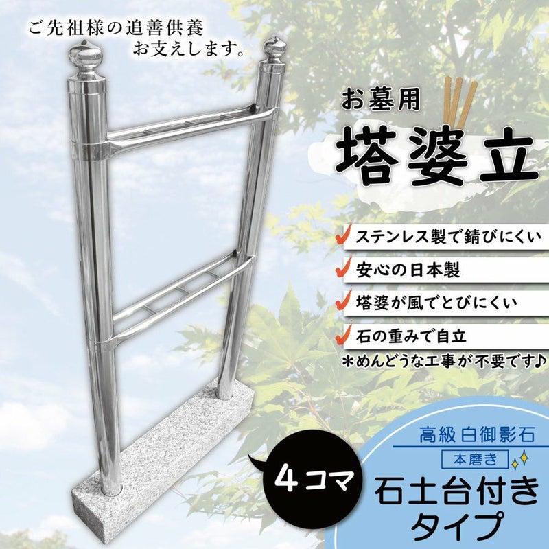 国産ステンレス製卒塔婆立て4コマ白御影石台付き自立式タイプ(1台)【STクラフト謹製】