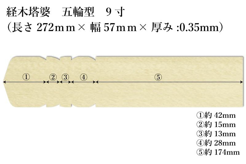 経木塔婆・水塔婆五輪型9寸(272mm)×57mm×0.35mm