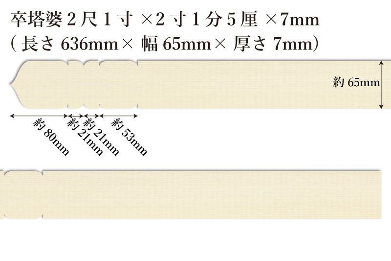 卒塔婆2尺1寸(636mm)×2寸1分5厘(65mm)×7mm