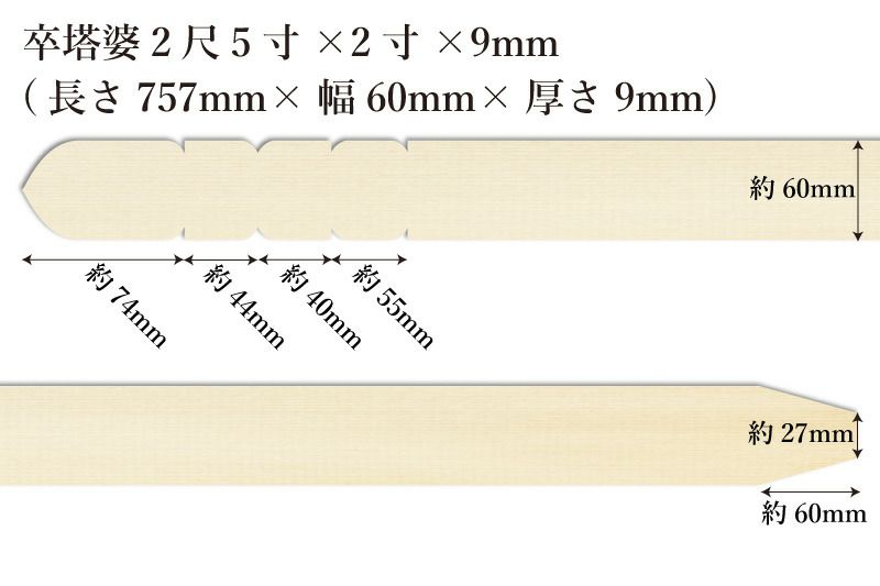 卒塔婆2尺5寸(757mm)×2寸(60mm)×9mm