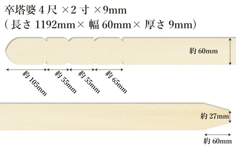 卒塔婆4尺(1192mm)×2寸(60mm)×9mm