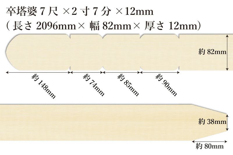 卒塔婆7尺(2096mm)×2寸7分(82mm)×12mm