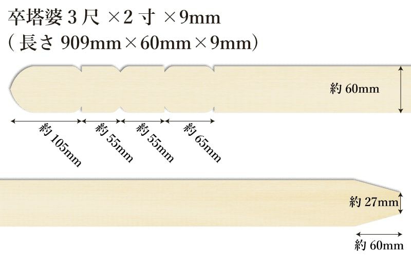 卒塔婆3尺(909mm)×2寸(60mm)×9mm