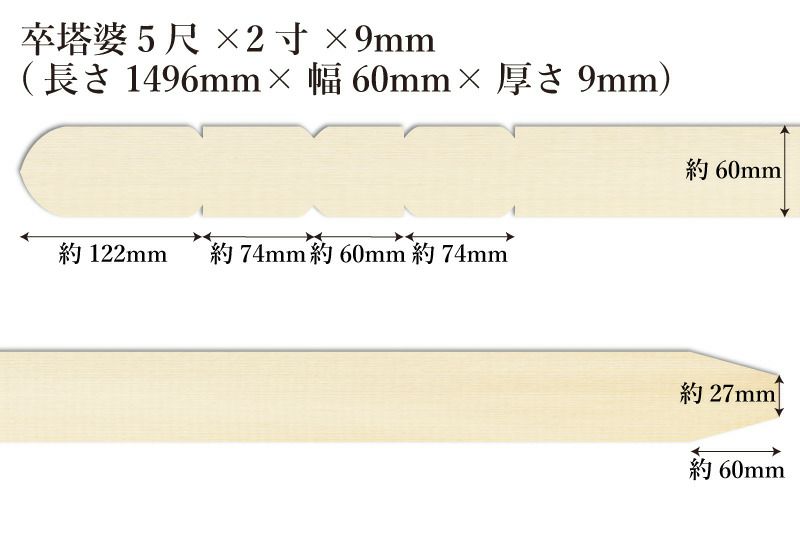 卒塔婆5尺(1496mm)×2寸(60mm)×9mm