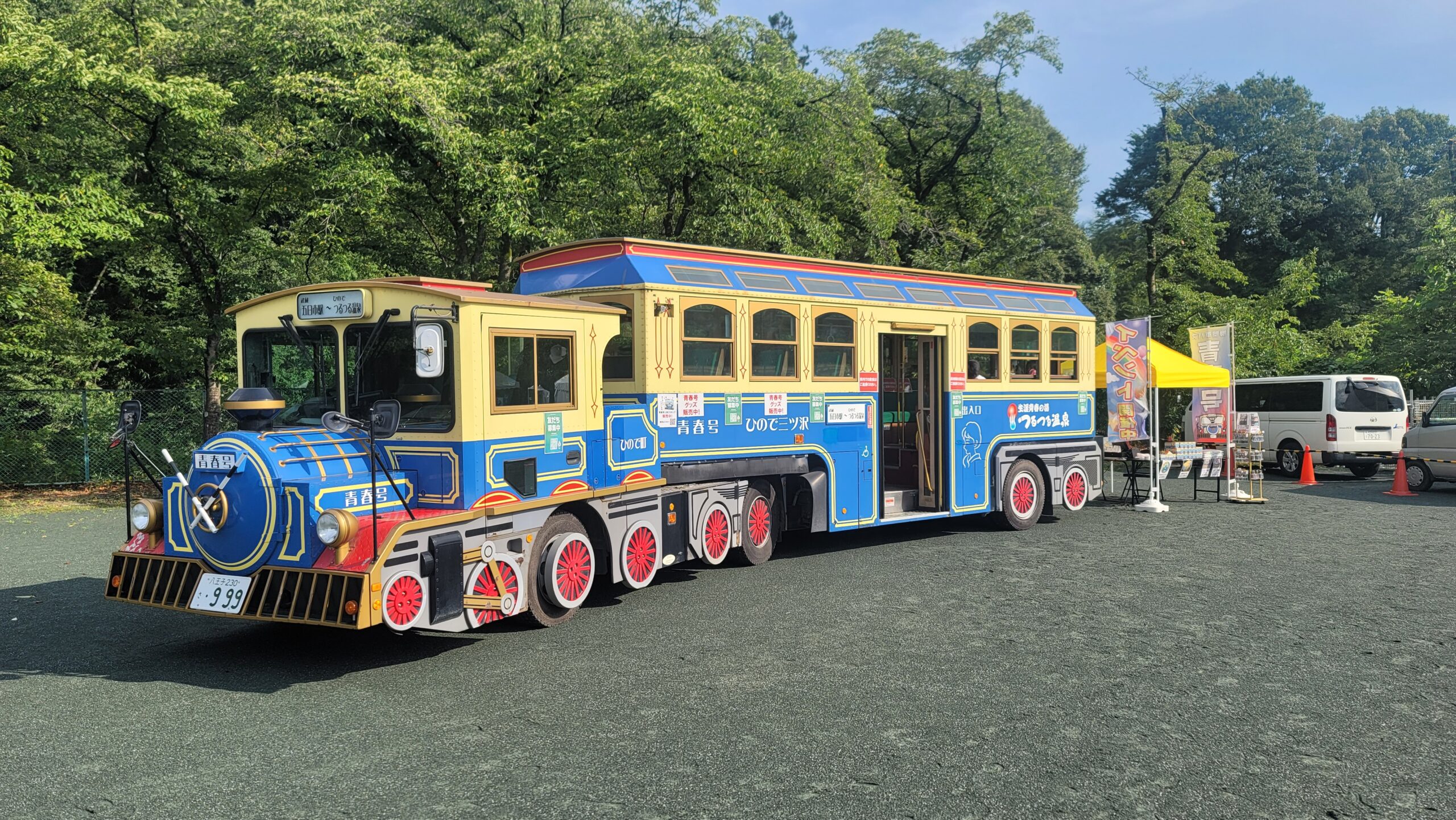 日の出夏祭りに青春号出展しました。 青春号を会場に入れて、グッズ販売をしました。 例年は、山の中腹にある平井中学校のグランドが会場でしたが、昨年凄い人出で、場所的にも手狭になったので、今年はふもとの町民グランドが会場となりました。 フィナーレの花火大会は少し遠くなりました。 グッ